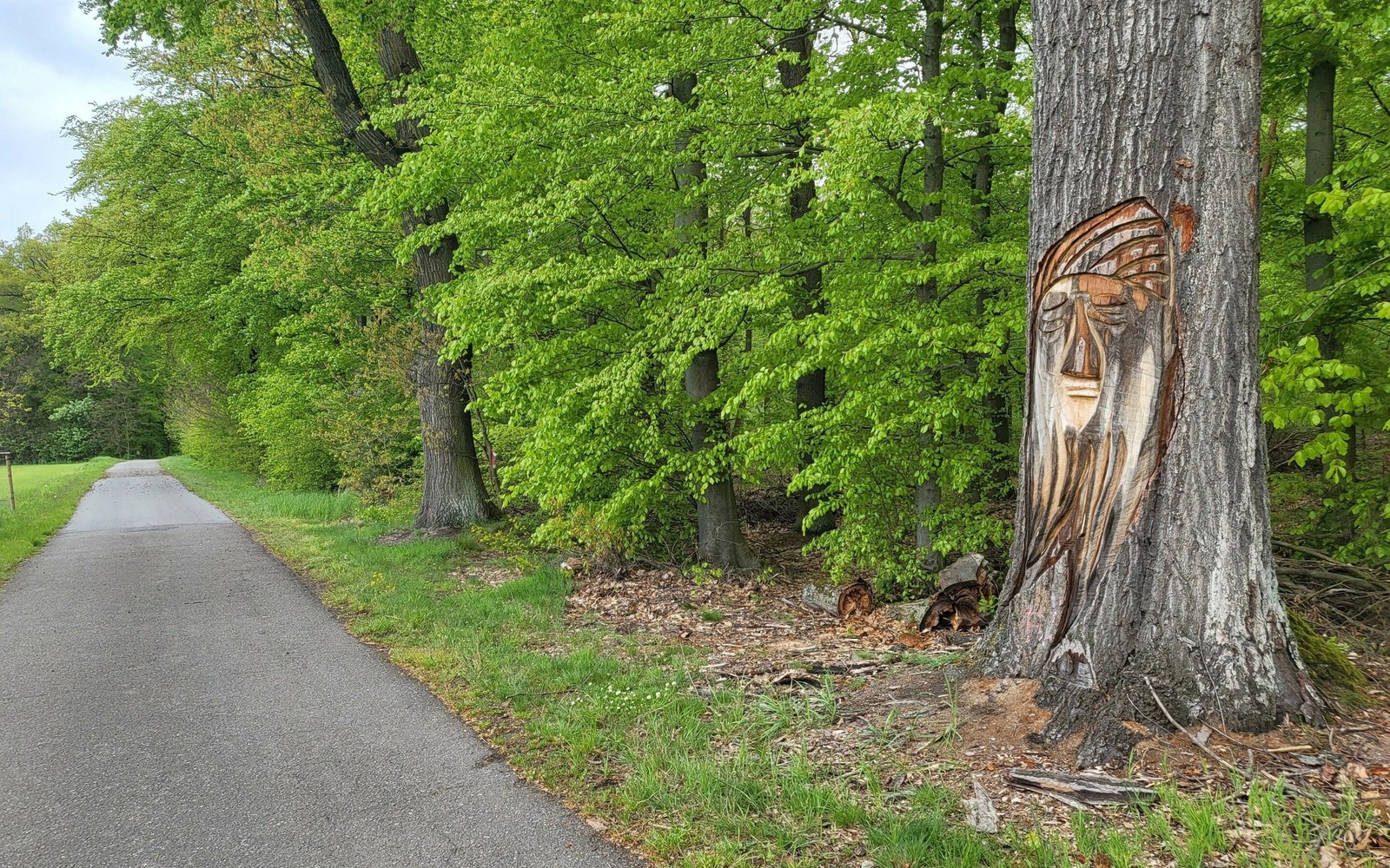 Baumschnitzerei am Wegesrand, Foto: Kathrin Winkler, Lizenz: Tourismusverband Lausitzer Seenland e.V.