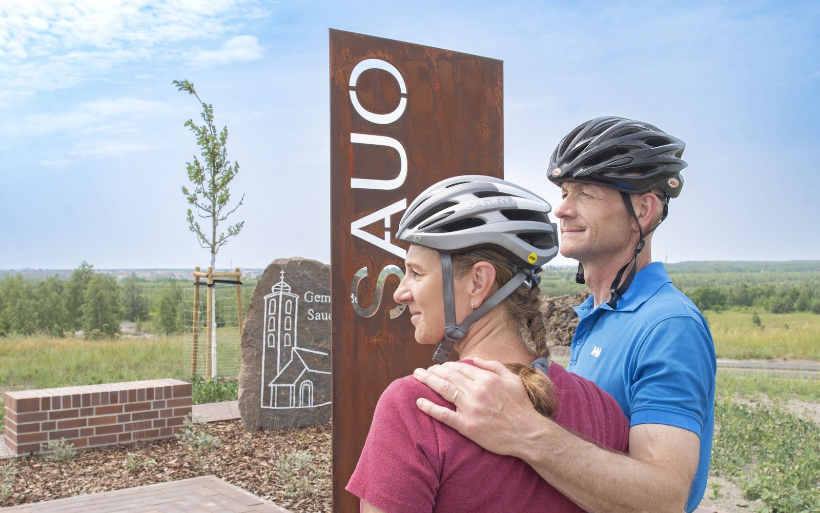 The Reppister Höhe vantage point on the southern shore of Großräschener See opens up a wide view of the Lusatian landscape, with the town of Senftenberg to the south and Großräschen on the opposite shore of the lake to the north. The seven villages excavated for the Meuro open-cast mine are commemorated by their outlines on a scale of 1:150 and by stelae bearing the place names: Bückgen, Großräschen-Süd, Anna-Mathilde, Rauno, Reppist, Sauo and Birkenhain.