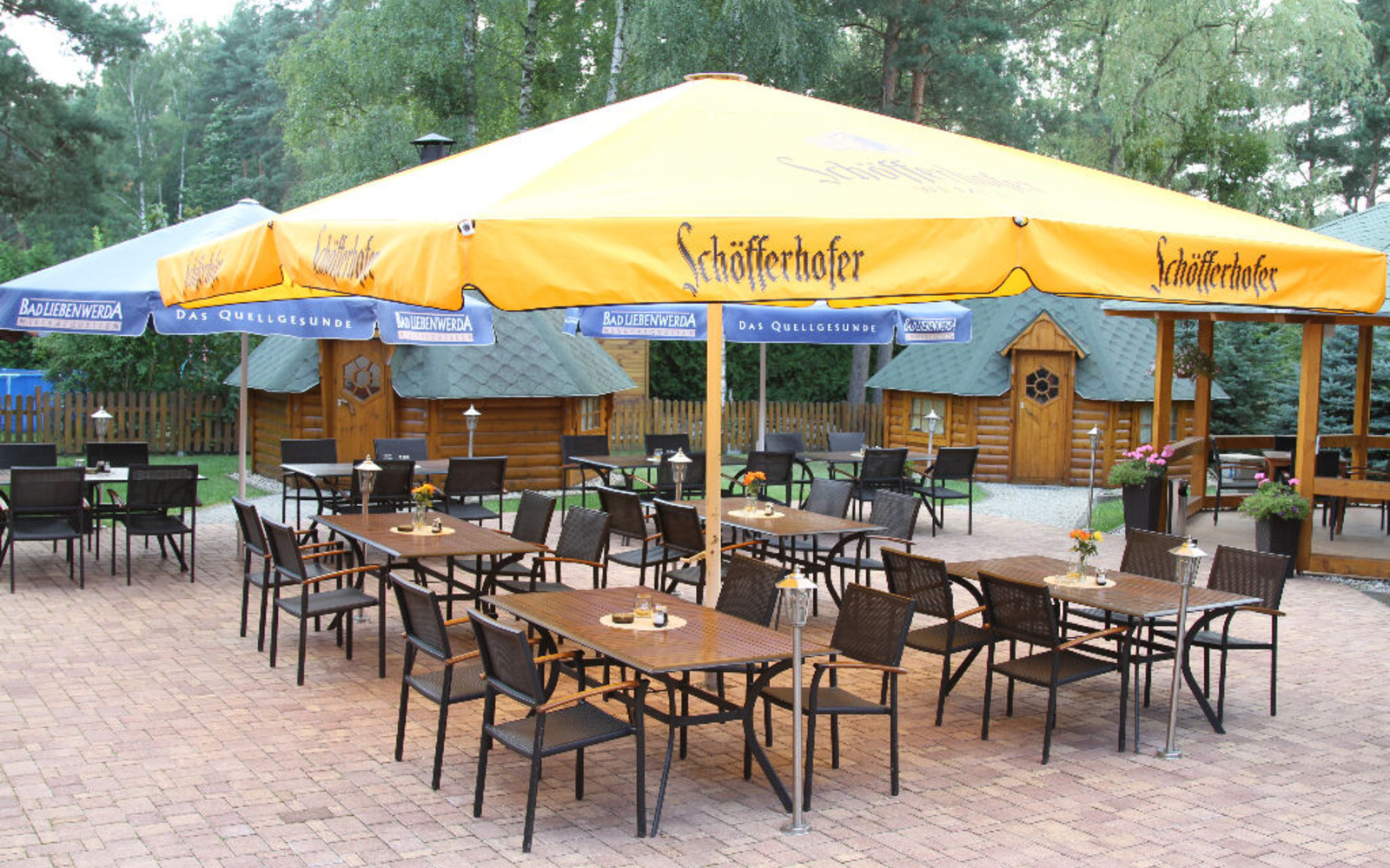 Not far from Lake Senftenberger See, the family-run restaurant serves meals based on regional cuisine using fresh local ingredients. The menu includes home-made brawn, zander fillet and various types of schnitzel, along with vegetarian dishes and Italian and French desserts. A special facility for groups are the two "Grillkotas" – traditional huts for 16 or 25 people.