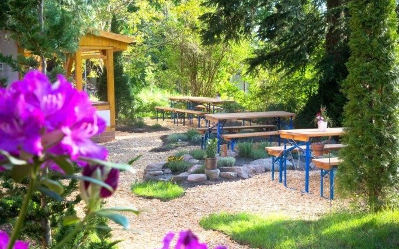 In the summer (May - September), guests will dine in the stylish herb garden and will be served selected aperitifs and starters, a wide range of tartes flambées with matching wines and of course cheese platters and desserts to round off your meal.