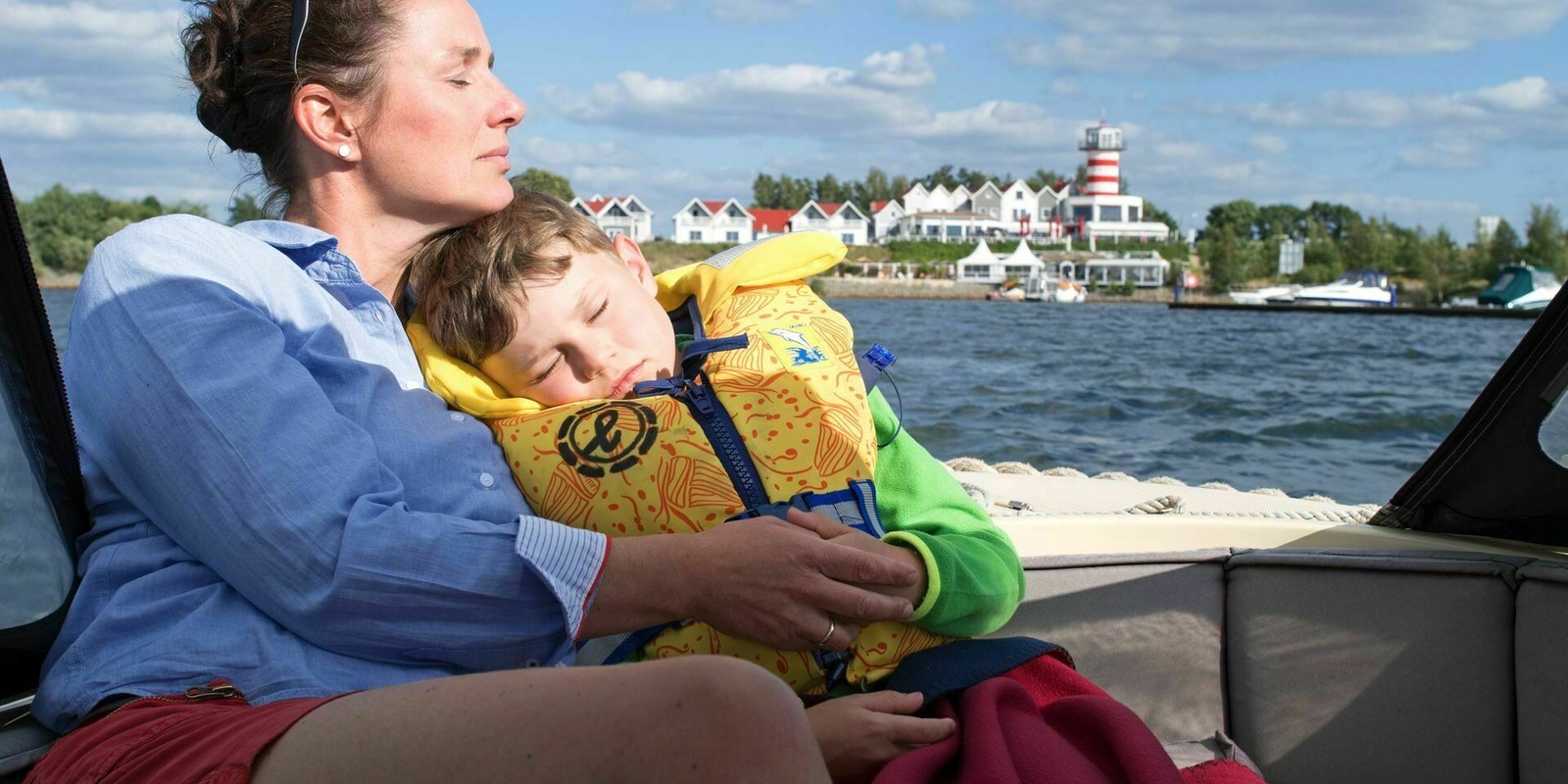 All this time on the water builds up an appetite, so the family stops off at the picnic area near the lighthouse. Mum and dad grab the picnic hamper and blanket, and Tom dashes off to find a cosy spot. After a feast of cheese, fruit and fresh bread, they head back towards Hafencamp campsite.